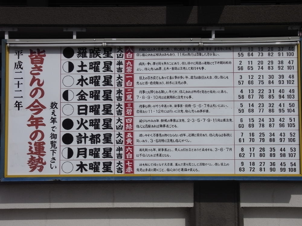 この成田山の境内の最後には、「皆さんの今年の運勢」という数え年でみる運勢表があるのです!